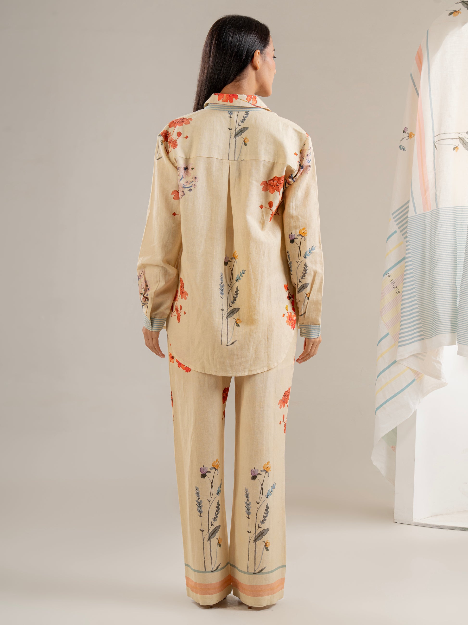 Cotton-Linen Floral Shirt & Pants Co-ord Set