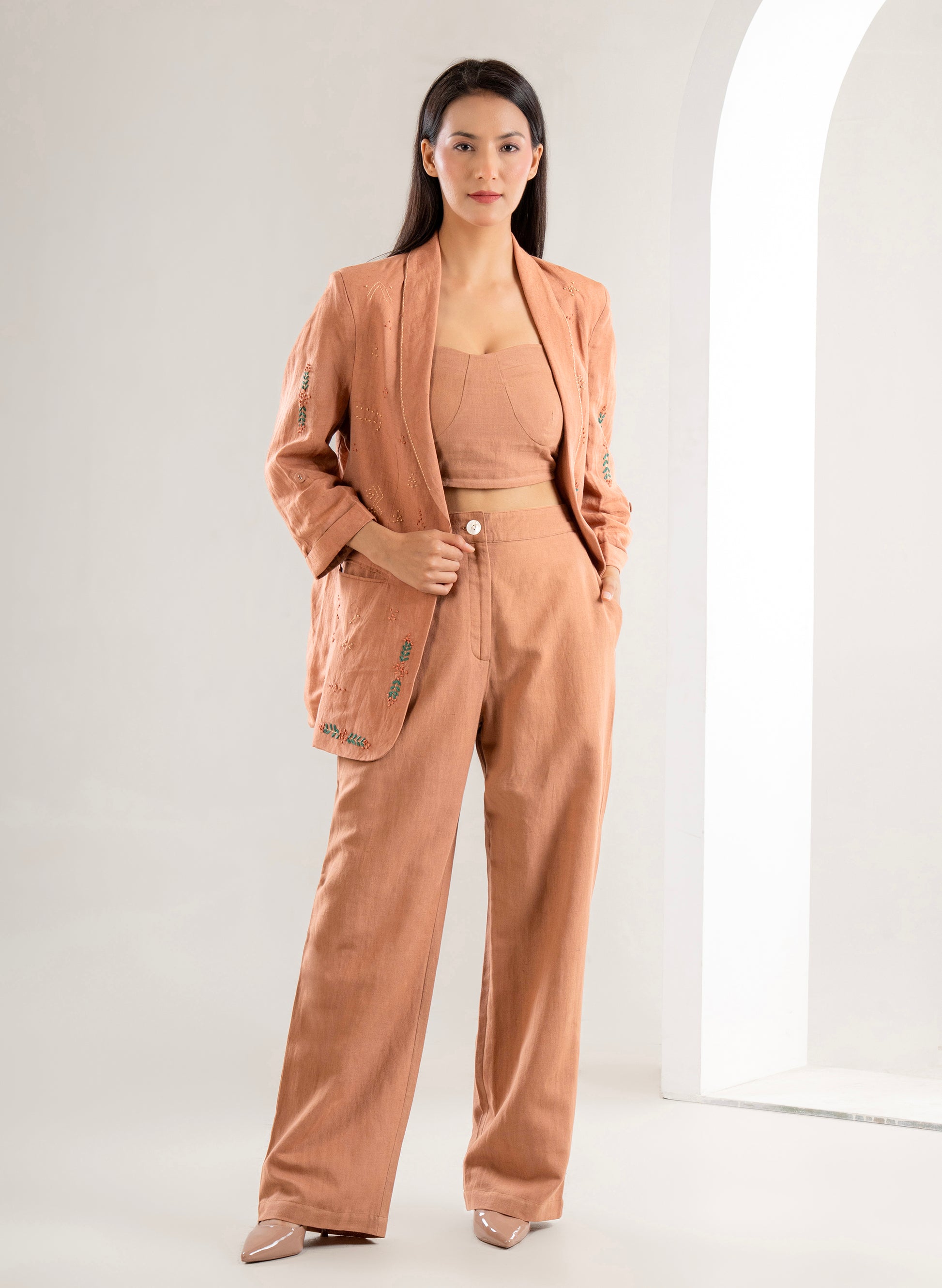 Inspired by the warm, slow-living charm of Monopoli, this set blends refined tailoring with effortless softness. Designed for women who appreciate understated luxury with an artistic touch.